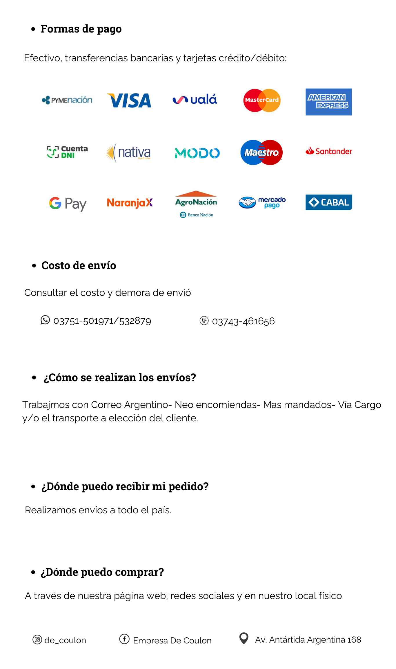 HORARIO DE ATENCION DE LUNES A VIERNES DE 8 A 12HS Y DE 14:30 A 18:30HS Y LOS SABADOS DE 8 A 12HS